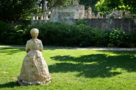 A l’extérieur dans le jardin attenant au Palais idéal, Claire Tabouret crée une fontaine hommage à Philomène, deuxième épouse de Ferdinand Cheval, elle devient la mère de Alice à l’âge de 41 ans. Présence discrète aux côtés du facteur Cheval, Philomène accompagne son époux dans son rêve et lui permet de le réaliser par tous les moyens dont elle dispose qu’ils soient financiers ou émotionnels. Grand amour du facteur Cheval, elle décède à l’âge de 76 ans – deux après l’achèvement du Palais. Humble et discrète, elle figure grâce à Claire Tabouret aux côtés de l’œuvre de son célèbre époux, le regard tourné vers son Palais idéal.
