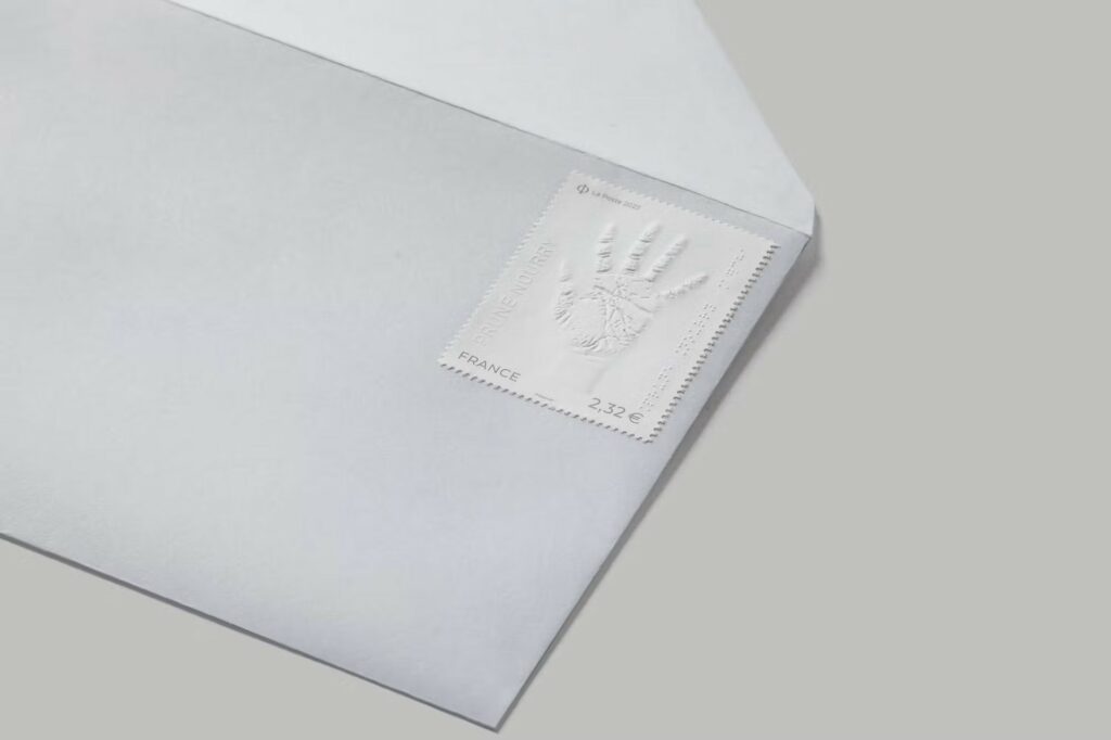 Le parcours s’ouvre sur un univers postal, clin d’œil à Ferdinand Cheval. Un timbre en relief, conçu par Prune Nourry en partenariat avec La Poste en 2024 (le premier de ce type) inaugure l’exposition. Réalisé en collaboration avec des personnes aveugles et malvoyantes, il est né d’ateliers d’expérimentation tactile où formes, textures et volumes ont été ajustés pour être perçus par les doigts. Plus qu’un objet à voir, ce timbre se lit au toucher : il incarne une création pensée avec celles et ceux qui en font l’expérience sensible. Ce timbre devient également le vecteur d’une lettre adressée à Philomène, épouse du Facteur, figure discrète mais essentielle sans laquelle le Palais idéal n’aurait sans doute jamais vu le jour.